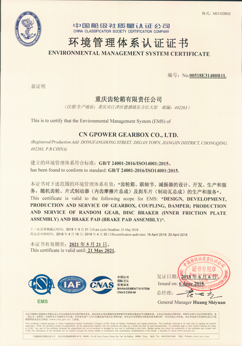 Environmental Management System Certificate (2018)